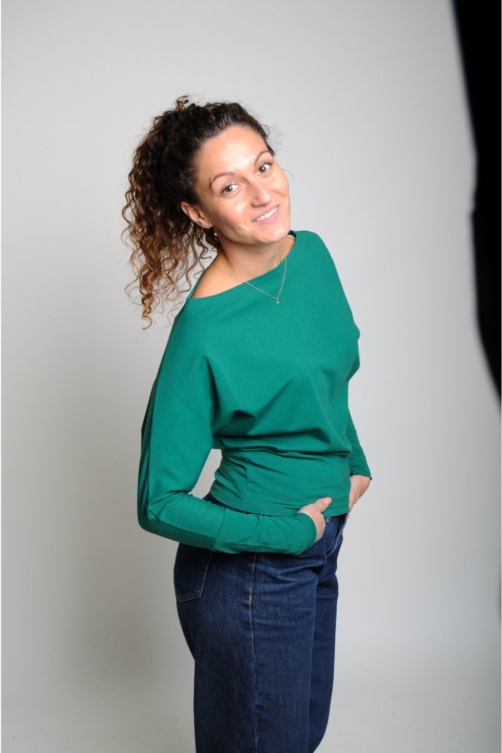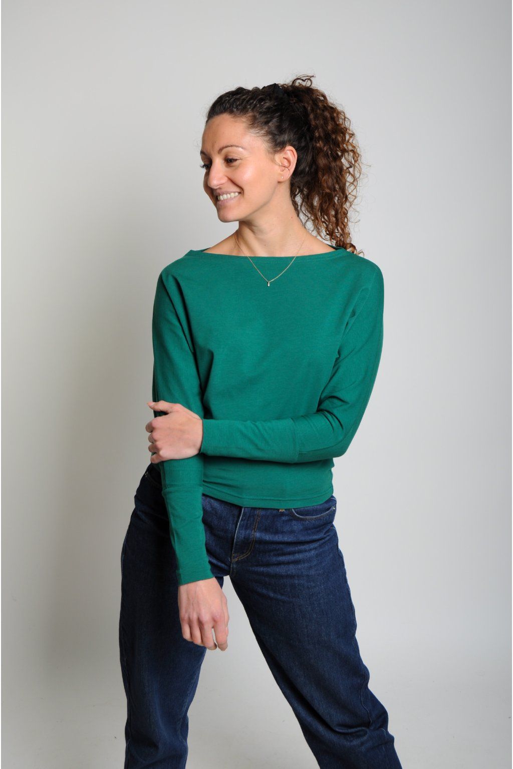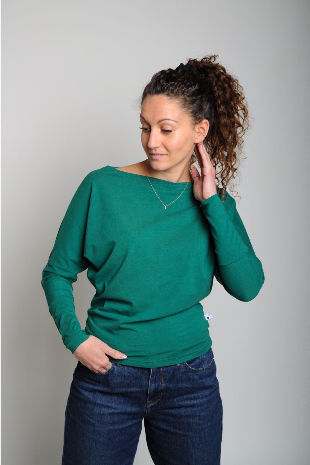- bavlněné tričko s lodičkovým výstřihem, netopýří střih
